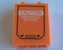 Brick 1 x 2 x 2 with Inside Stud Holder with Door Hatch and 'CAUTION DOOR SWINGS OUTWARD' Pattern (Sticker) - Set 60195