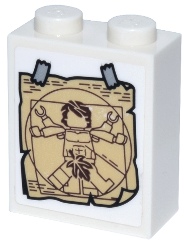 Brick 1 x 2 x 2 with Inside Stud Holder with Picture of Vitruvian Minifigure with Fig Leaf and Tape Pattern (Sticker) - Set 70657