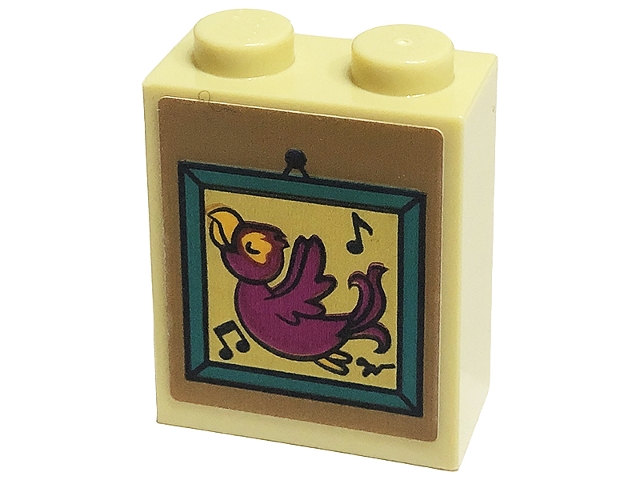 Brick 1 x 2 x 2 with Inside Stud Holder with Picture Frame with Music Notes and Magenta Bird Pattern (Sticker) - Set 41449