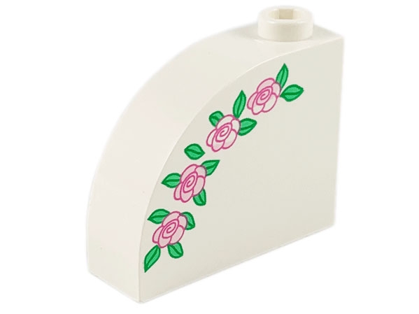 Slope, Curved 3 x 1 x 2 with Hollow Stud with Pink Roses and Green Leaves Pattern