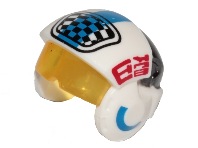 Minifigure, Headgear Helmet SW Rebel Pilot Raised Front with Trans-Yellow Visor with Blue Stripe and Black and White Checkered Pattern