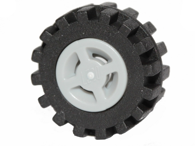 Wheel 8mm D. x 6mm with Slot with Black Tire 15mm D. x 6mm Offset Tread Small - Band Around Center of Tread (34337 / 87414)