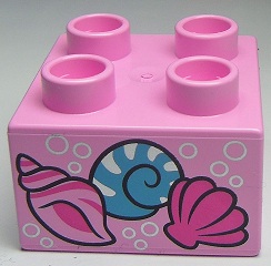 Duplo, Brick 2 x 2 with 3 Shells and Silver Bubbles Pattern