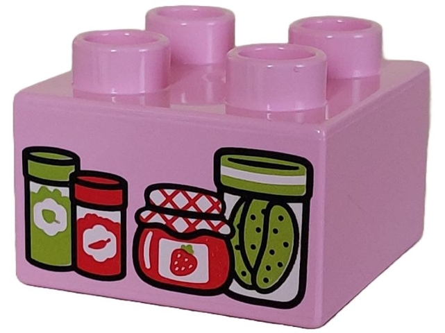 Duplo, Brick 2 x 2 with Lime and Red Jars with Herbs, Strawberry Jelly and Pickles Pattern