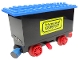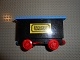 Train Battery Box Car with Two Contact Holes, Red Switch Lever, Blue and Red Magnets, Red Wheels, and Blue Roof with 'International TRANSPORT' Pattern on Both Sides (Stickers) - Sets 161 / 181-1 / 183