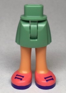 Mini Doll Hips and Skirt with Molded Nougat Legs and Printed Coral Shoes with Dark Purple Laces and Soles Pattern - Thin Hinge