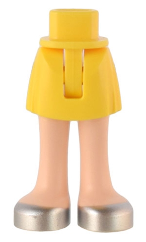 Mini Doll Hips and Skirt with Molded Light Nougat Legs and Printed Silver Open Top Shoes Pattern - Thin Hinge