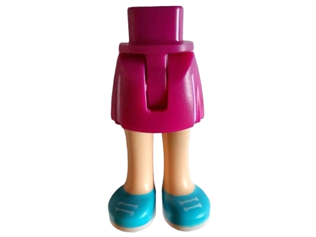 Mini Doll Hips and Skirt with White Stripes, Molded Light Nougat Legs and Printed Medium Azure Shoes with White Laces and Soles Pattern - Thin Hinge
