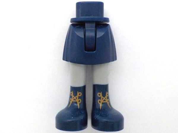 Mini Doll Hips and Skirt with Molded Light Bluish Gray Legs and Printed Dark Blue Boots with Gold Laces Pattern - Thin Hinge