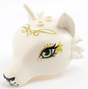 Fox Head with Metallic Light Blue Eyes with Eyelashes, Black Nose and Whisker Dots, Gold Swirls and Markings Pattern