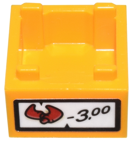 Container, Box 2 x 2 x 1 - Top Opening with Flat Inner Bottom with Red Demon Bull Horns, '3.00' and Black Border Pattern (Sticker) - Set 80036