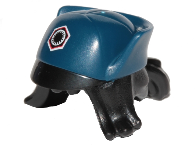 Minifigure, Hair Combo, Hair with Hat, Swept Sideways with Ponytail, Black, White and Red First Order Insignia and Black Flap Pattern