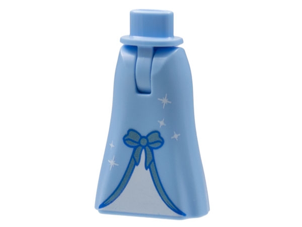 Mini Doll Hips and Skirt Full Length with Metallic Light Blue Bow and Silver Sparkles with Light Aqua Insert Pattern - Thin Hinge