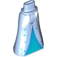 Mini Doll Hips and Skirt Full Length with White Sides, Metallic Light Blue Sparkles and Inset, Dark Azure Trim Pattern - Thin Hinge