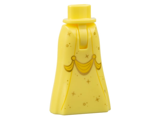 Mini Doll Hips and Skirt Full Length with Gold Circles and Sparkles and Yellow Sash Pattern - Thin Hinge