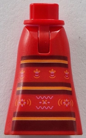 Mini Doll Hips and Skirt Full Length with Dark Red and Bright Light Orange Stripes, Medium Lavender Flowers and Wavy Lines Pattern - Thin Hinge