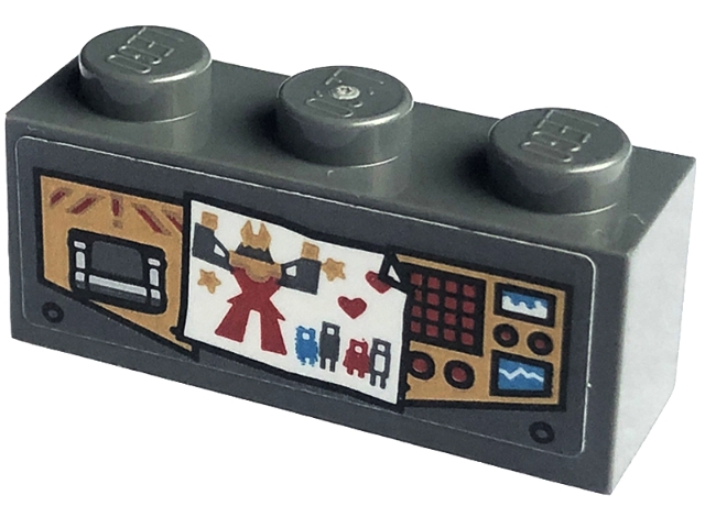 Brick 1 x 3 with Gold Control Panels with Red Buttons, Dark Azure and White Displays, and Paper with Picture of Mech Pattern (Sticker) - Set 71775