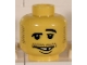 Minifigure, Head Black Eyebrows, Left Raised, Moustache and Sideburns Stubble, Lopsided Open Mouth Smile with Teeth and Lower Lip, Missing Tooth Pattern