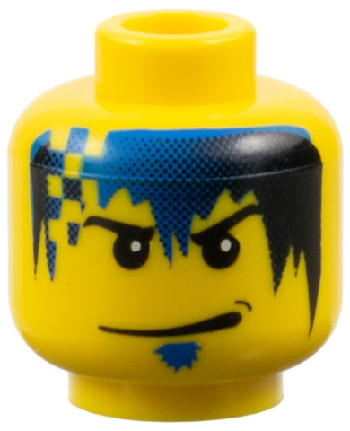 Minifigure, Head Black and Blue Hair, Checkered, Soul Patch Pattern (Zed)