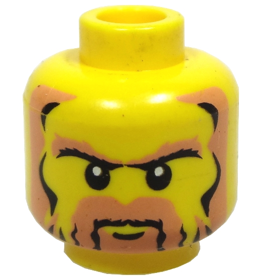 Minifigure, Head Black and Nougat Beard, Sideburns, Bushy Eyebrows, White Pupils, Stern Pattern