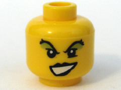 Minifigure, Head Female Black Eyebrows and Lips, Lime Eye Shadow Pattern