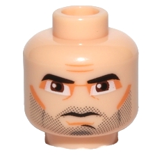 Minifigure, Head Black Thick Eyebrows and Beard Stubble, Large Reddish Brown Eyes, Nougat Eye Shadow, Cheek Lines and Chin Dimple, Furrowed Brow, Stern Pattern