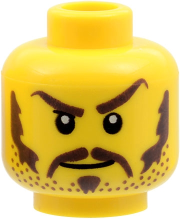 Minifigure, Head Dark Brown Eyebrows, Moustache, Soul Patch, Sideburns and Beard Stubble, Evil Grin Pattern