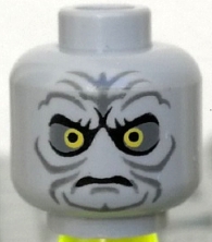 Minifigure, Head Yellow Eyes, Dark Bluish Gray Eye Shadow, Jowl Lines, Chin Dimple and Wrinkles, Furrowed Brow, Stern Pattern
