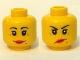 Minifigure, Head Dual Sided Female Black Thin Eyebrows, Single Eyelashes, Beauty Mark, Red Lips, Medium Nougat Wrinkles, Grin / Angry Lopsided Frown Pattern