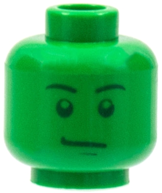 Minifigure, Head Male Stern Black Eyebrows, Green Pupils and Chin Dimple Pattern