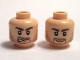 Minifigure, Head Dual Sided Dark Brown Bushy Eyebrows and Beard Stubble, Upper Eyelids, Dark Orange Chin Dimple, Lopsided Open Mouth Scowl with Teeth / Grin Pattern