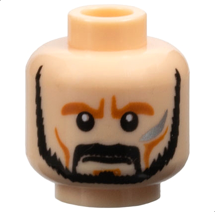 Minifigure, Head Beard Trimmed, Moustache, Silver Cheek Mark, Determined Expression Pattern