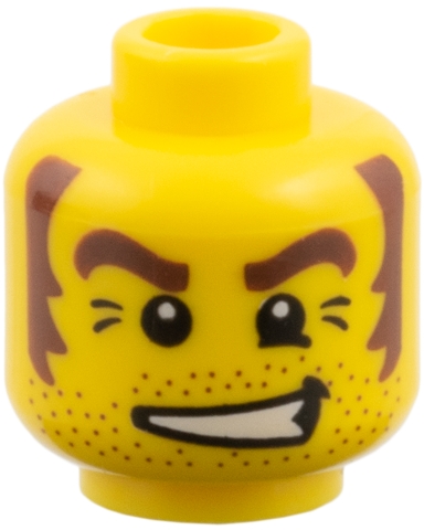 Minifigure, Head Male Stubble, Brown Eyebrows and Sideburns, White Pupils Pattern