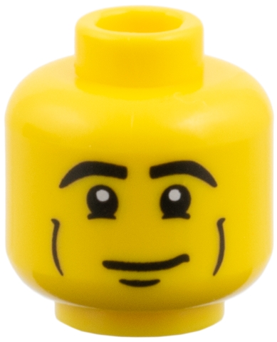 Minifigure, Head Male Black Eyebrows, Cheek Lines and White Pupils Pattern