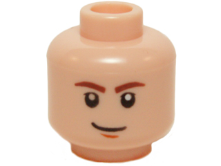 Minifigure, Head Reddish Brown Eyebrows, Dark Orange Chin Dimple, Lopsided Grin Pattern