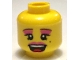 Minifigure, Head Female Black Thin Eyebrows, Eyelashes, Dark Pink Eye Shadow and Lips, Beauty Mark, Open Mouth Smile with Top Teeth and Red Tongue Pattern