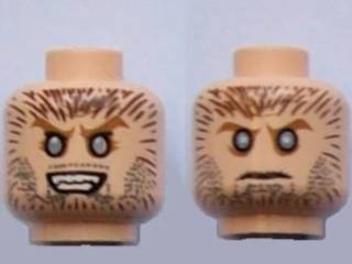 Minifigure, Head Dual Sided HP Werewolf Fur with Pointed Teeth / Closed Mouth Grim Pattern