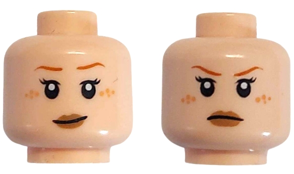 Minifigure, Head Dual Sided Female with Thin Dark Orange Eyebrows, Medium Nougat Freckles, Dark Nougat Lips, Smile / Frown Pattern