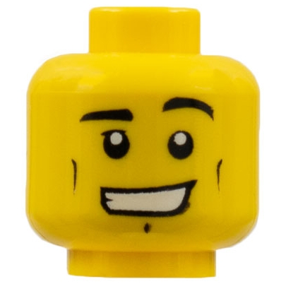 Minifigure, Head Black Eyebrows, Left Raised, Small Cheek Lines, Chin Dimple, Open Mouth Smile with Teeth Pattern