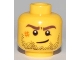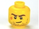 Minifigure, Head Dark Brown Eyebrows, Black Beard Stubble, Dark Orange Scuff Mark, Lopsided Grin Pattern