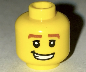 Minifigure, Head Male Thick Reddish Brown Eyebrows, White Pupils and Lopsided Grin with Teeth Pattern
