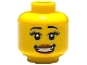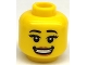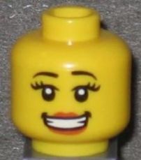 Minifigure, Head Female with Black Eyebrows, Large Eyelashes, Dark Orange Lips, Open Mouth Smile with Teeth and Dimples Pattern