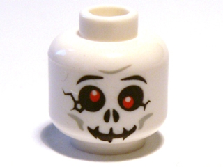 Minifigure, Head Skull Black Eyebrows and Cracks, Red Eyes, Light Bluish Gray Cheek Lines, Grin Pattern
