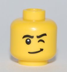 Minifigure, Head Black Eyebrows, Left Eye Wink, Lopsided Grin with Dimple Pattern