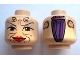 Minifigure, Head Alien with Dark Purple Thin Eyebrows, Large Reddish Brown Eyes, Horns and Markings, Red Lips, Grin, Ponytail on Back Pattern