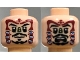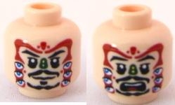 Minifigure, Head Dual Sided Black Eyebrows, Trimmed Moustache, Soul Patch and Goatee, Upper Eyelids, Dark Red Face Paint with Blue Eyes, Dark Green Nose, Grin / Scared Open Mouth with Top Teeth and Tongue Pattern