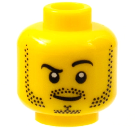 Minifigure, Head Black Eyebrows, Left Raised, Moustache, Mutton Chops and Goatee Stubble, Lopsided Grin Pattern