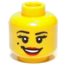 Minifigure, Head Female Black Eyebrows, Double Eyelashes, Beauty Mark, Red Lips, Open Mouth Smile with Teeth and Dimple Pattern