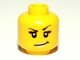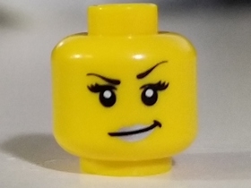 Minifigure, Head Female Black Arched Eyebrows, Eyelashes, Smirk with Silver Lips Pattern