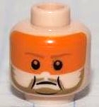 Minifigure, Head Dark Tan Moustache and Beard, Black Chin Dimple and Jowl Lines, Orange Visor, Frown Pattern